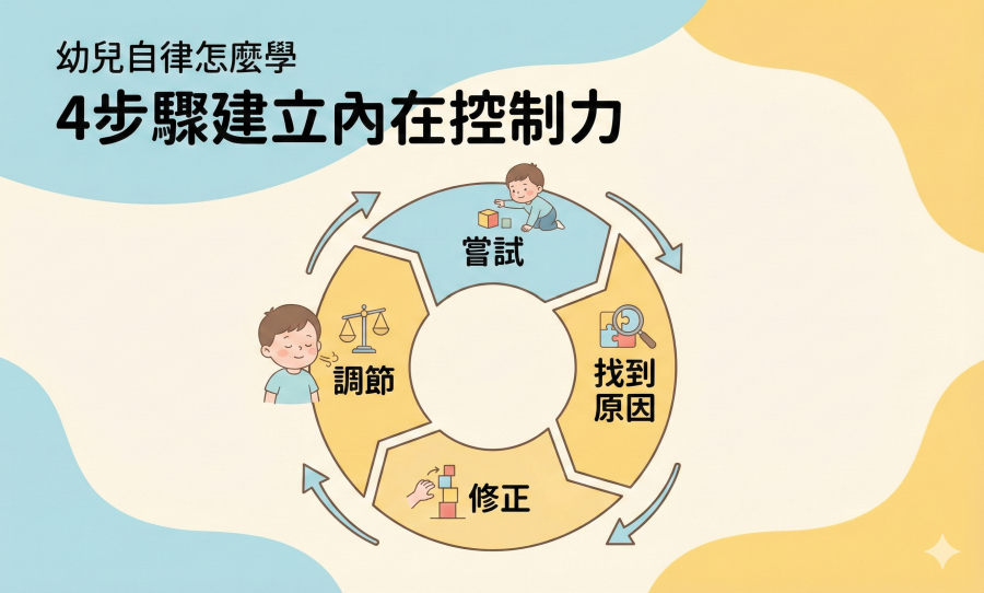 幼兒的自律學習是一個連續的過程,趙博士強調,父母應該讓孩子親身經歷「嘗試→找到原因→修正→調節」的過程,孩子透過不斷嘗試和調整,就能逐漸理解如何控制自己的行為情緒,這正是開始學習自律的好機會,相反地,如果事事由大人包辦、處處強制規範,孩子就失去體會因果、自行修正的機會,內在自律能力也難以養成。