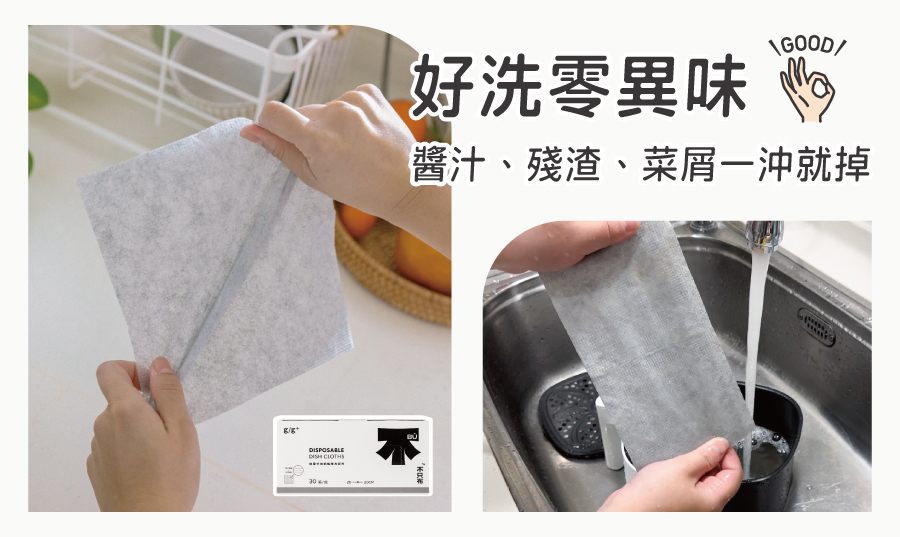 廚房水槽怎麼有股奇怪的味道,追蹤氣味來源,居然是海綿菜瓜布!以為洗乾淨其實油膩菜味仍殘留在裡面,甚至摸起來還有點黏,家裡人口多使用習慣不一,菜瓜布的衛生也難以控管,極細纖維洗碗布非常好沖洗,醬汁、殘渣、菜屑一沖就掉,不卡渣、不留味,加上快乾特性,讓洗碗布乾淨無味,細菌待不了,自然就衛生。