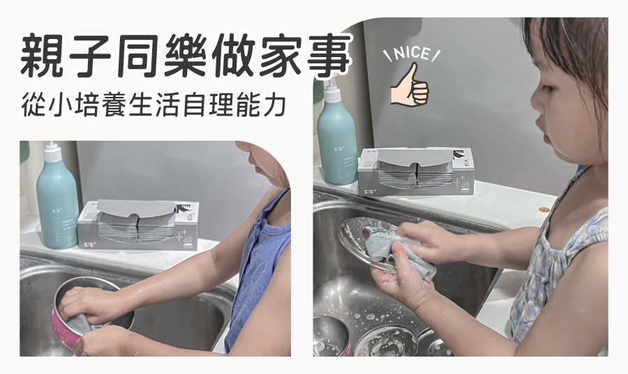 很多家庭會從小培養孩子基本的生活技能,洗碗就是一個很好的開始,海綿洗碗布又胖又大,孩子的小手拿的很辛苦,常常脫手掉到水槽裡,也容易清洗不徹底,但極細纖維洗碗布的厚度可以自己調整,好摺好握不易掉,細節也能好好清洗,孩子看到亮晶晶的餐具也能獲得滿滿的成就感。