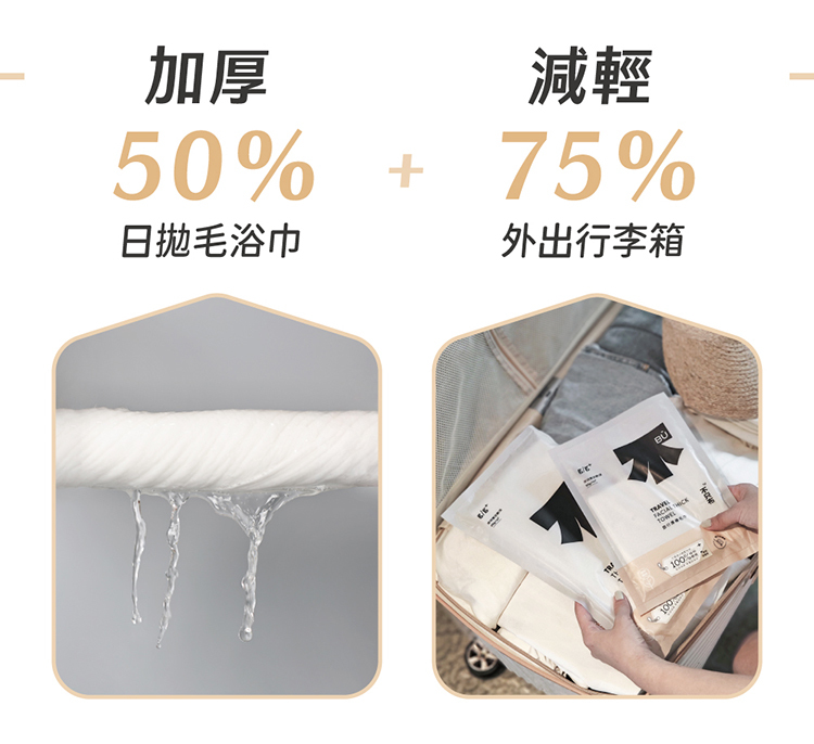 ◆ 減輕75%,只有家用毛浴巾重量25%