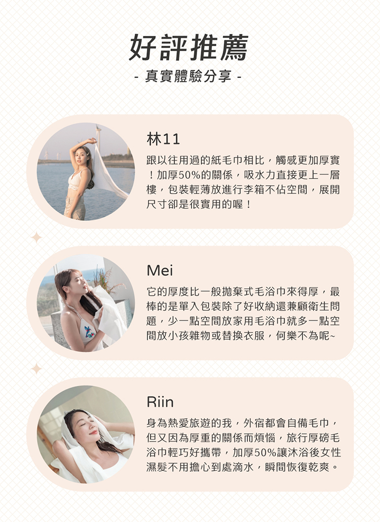 ◆ 加厚50%,厚實手感媲美家用毛浴巾