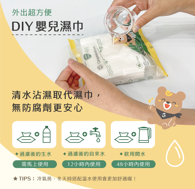 ◆ 寶寶專用「換布布好神隊友」,摺疊厚度剛剛好,拿了就擦,吸濕隔汙不沾手
