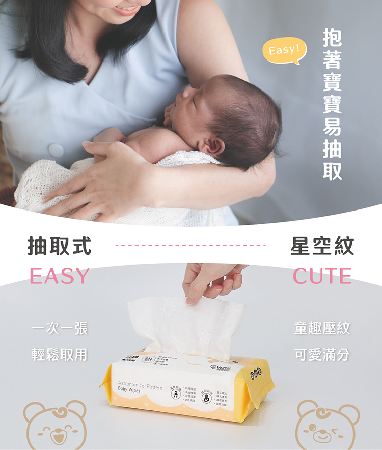 ◆ 抽取設計,抱著寶寶也能單手拿取進行擦拭