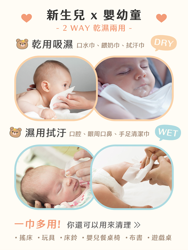 ◆ 嬰兒專用乾濕兩用巾,比濕巾、紗布巾還好用