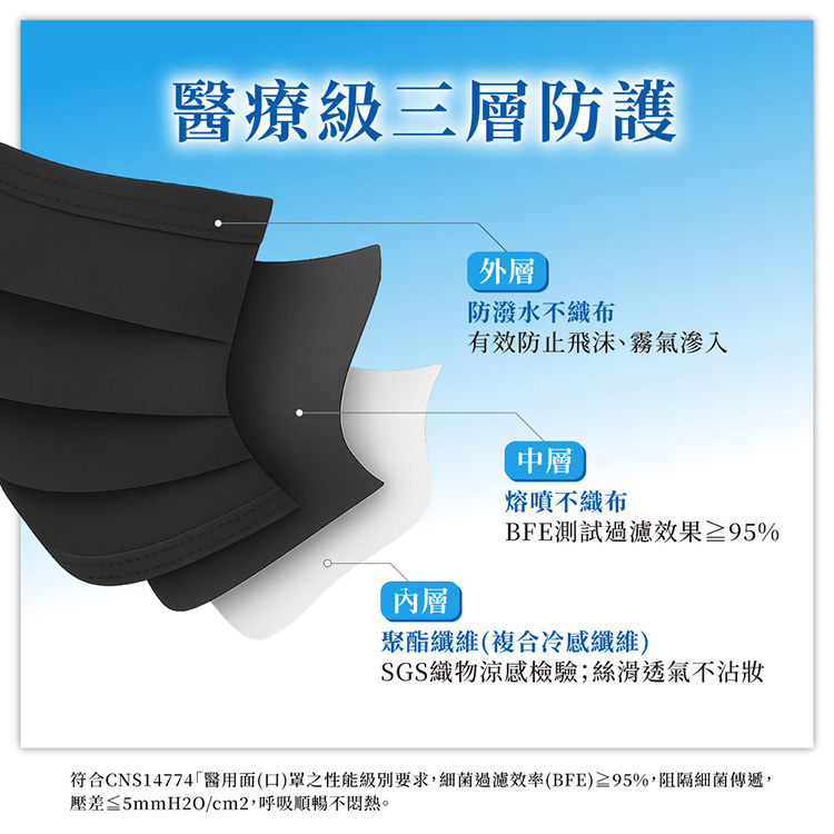 -鉅瑋醫療口罩X純色系列-涼感黑(5片/袋)