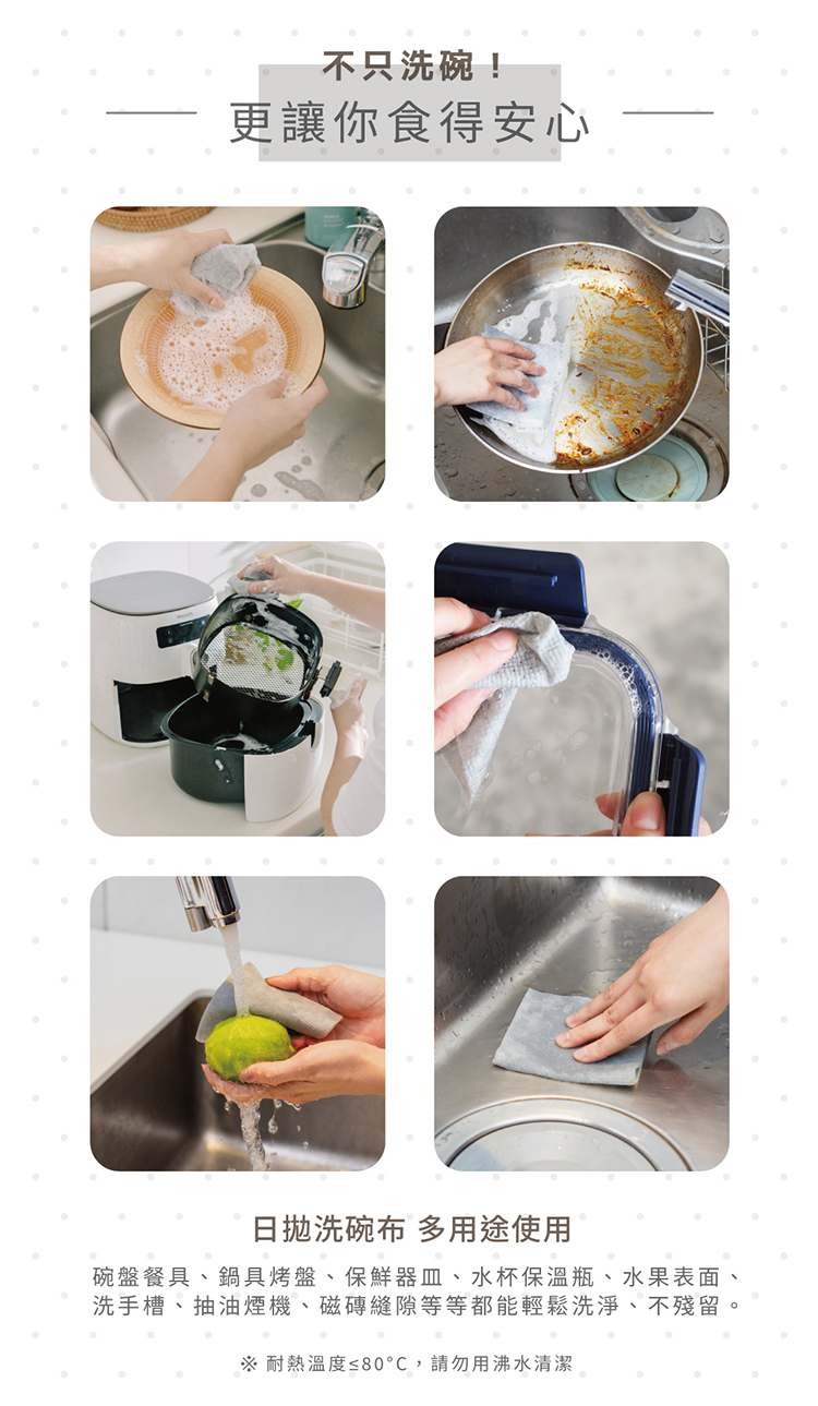 ◆ 一布洗全部:碗盤餐具、鍋具烤盤、保鮮器皿、水杯保溫杯、水果表面等等