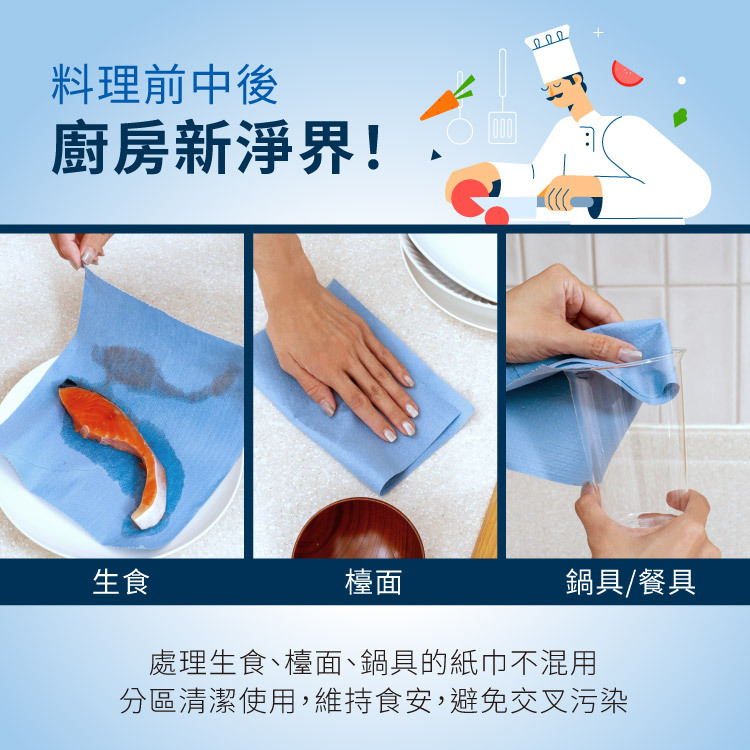 ◆ 廚房萬用型紙巾,料理前中後皆可使用