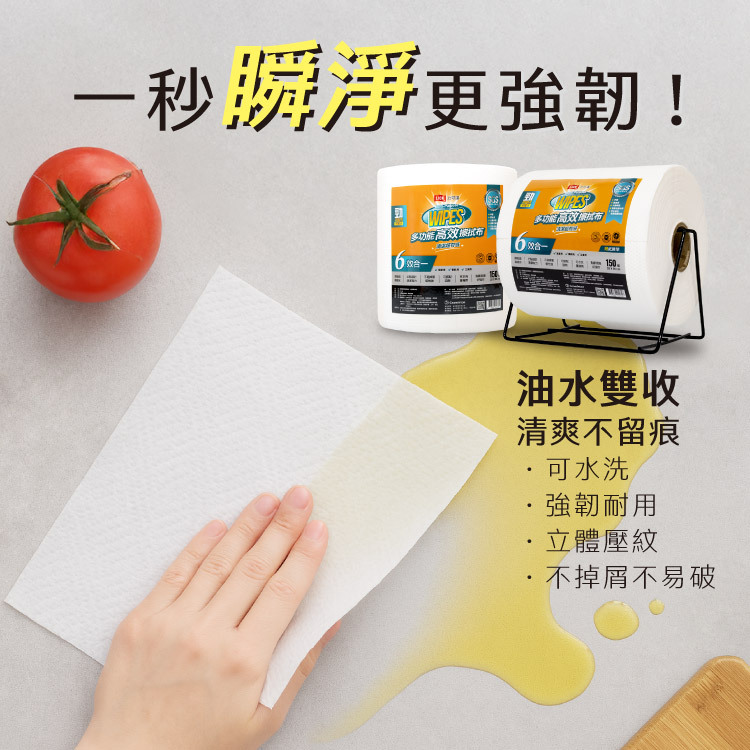 多功能高效擦拭布-捲筒家用款 無紙捲架(150張/捲,6捲共1箱)