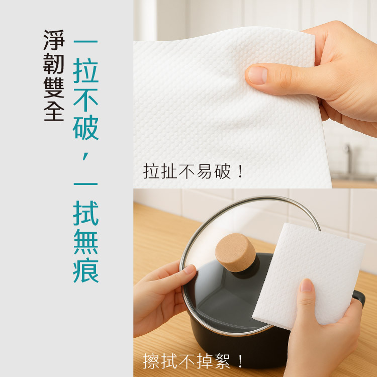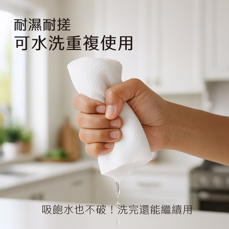 ◆ 水洗搓揉、來回擦拭不易破,一張就超夠用