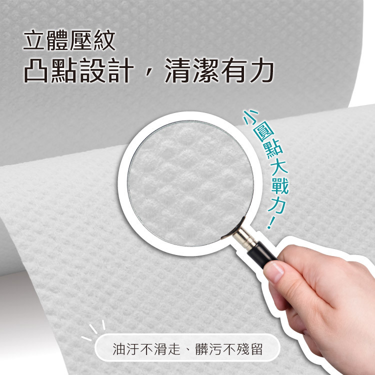 ◆ 小圓點設計,油汙一觸即吸,髒汙一擦即逝