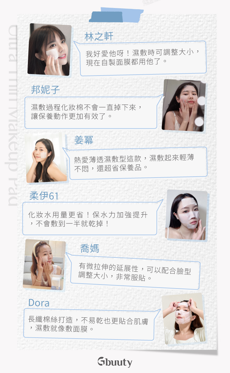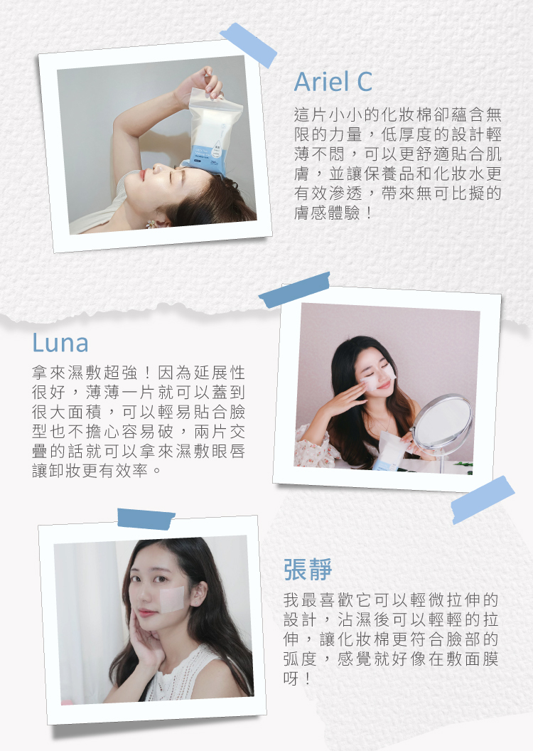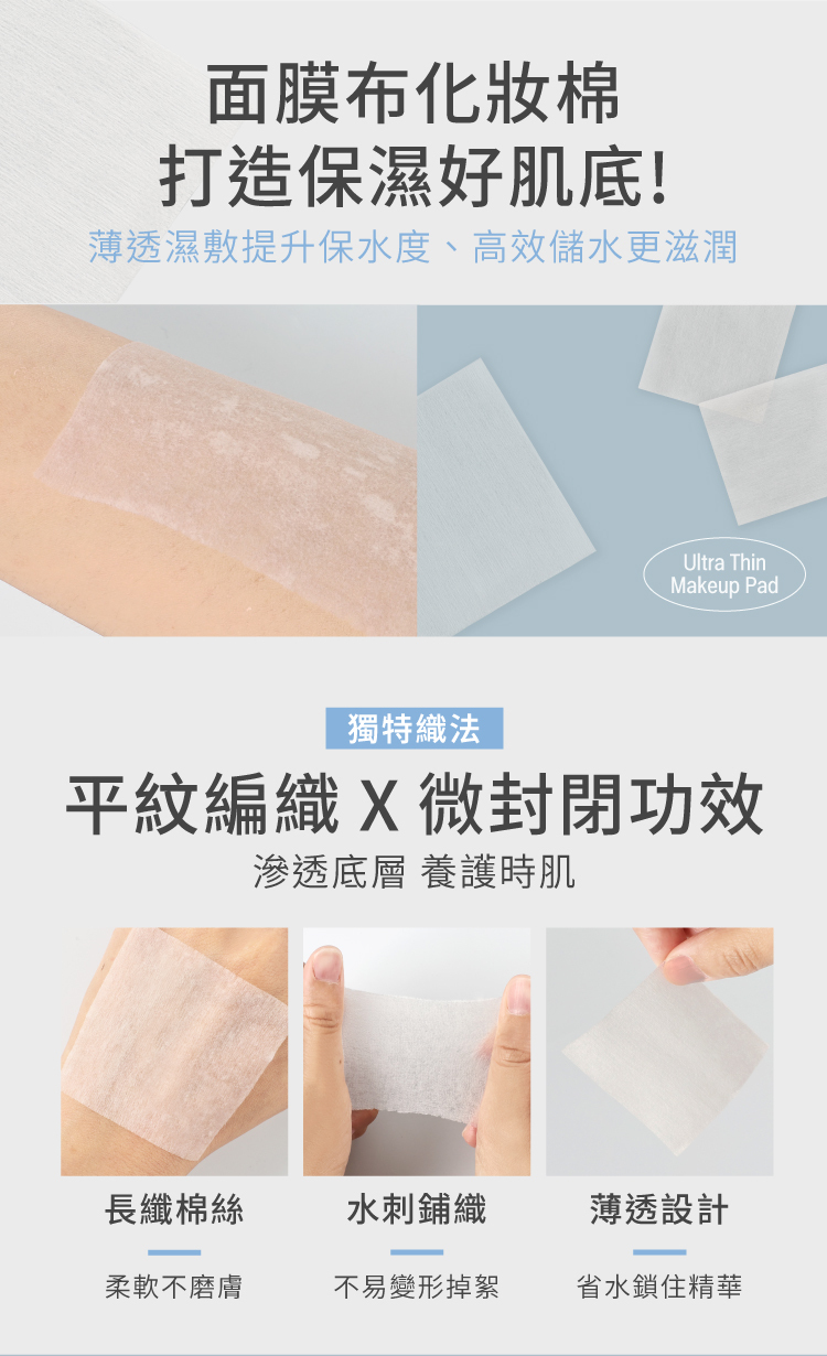 ◆ 面膜布做成的化妝棉,濕敷就像敷局部膜,輕鬆搞定分區保養