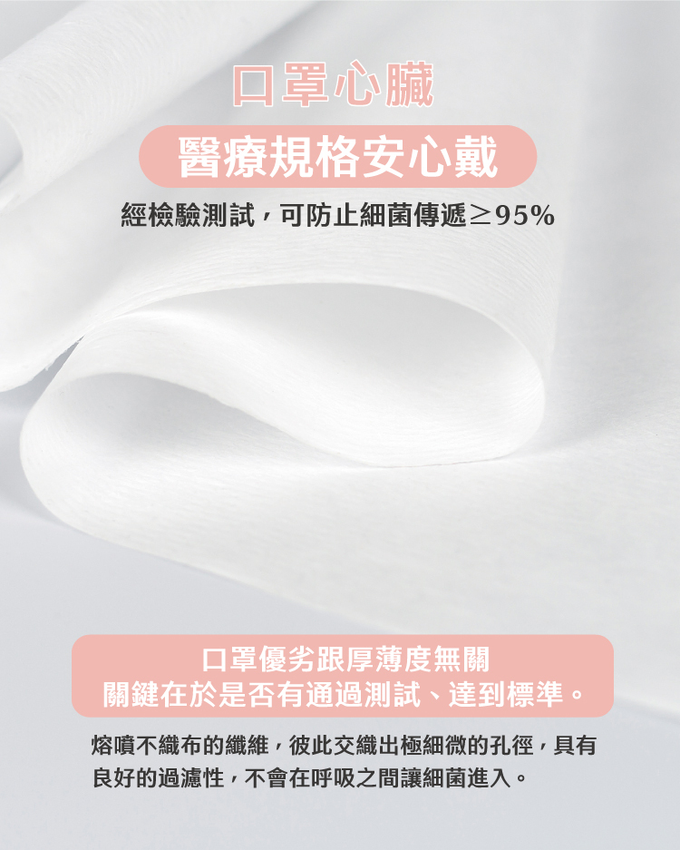 ◎ BFE過濾效果≥95%,有效過濾才能確實防護!