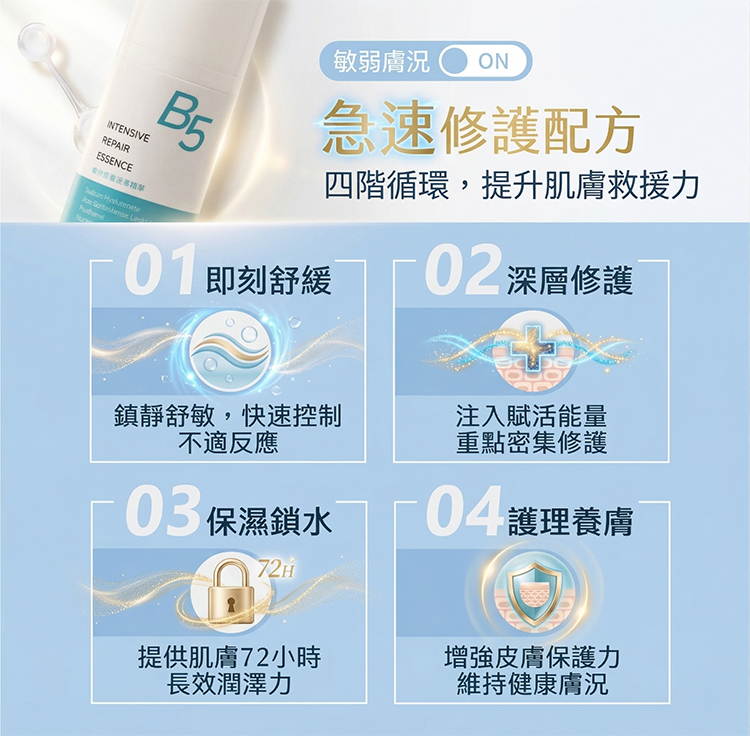 ◆6大舒敏修護成分,打造4階穩膚循環,分層改善敏弱膚況
