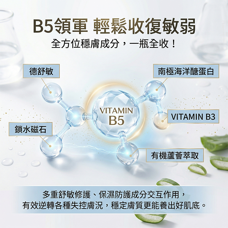 ◆維他命B5、B3有效舒緩敏弱、密集修護,號稱敏弱肌神隊友