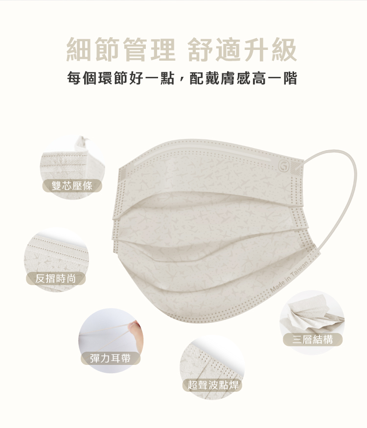 ◎ 口罩舒適度:採用六股纏繞耳帶,延展佳、彈力佳,久戴不壓耳、不鬆脫