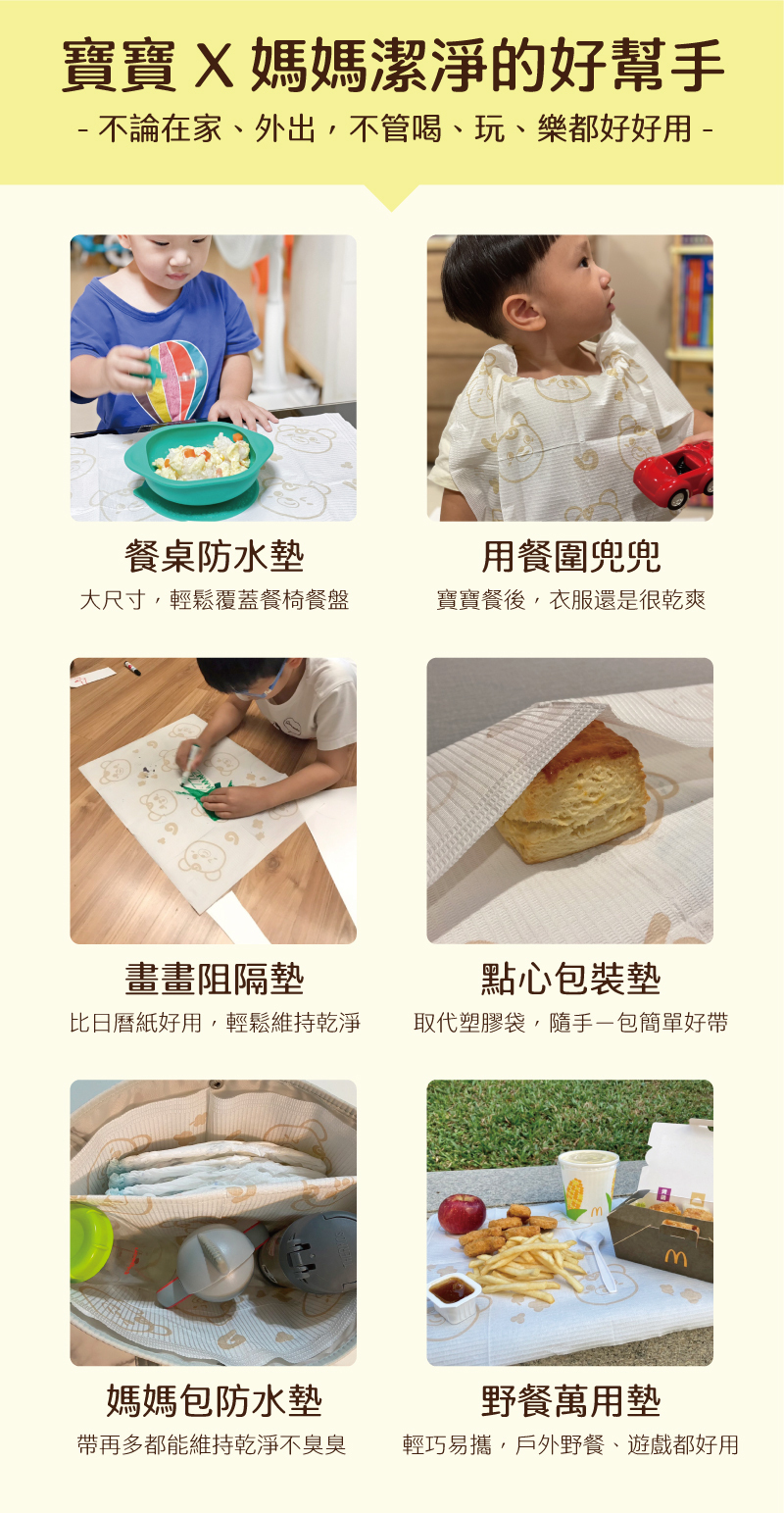 ◆ 推薦換尿布時使用,一鋪有效保護床墊潔淨