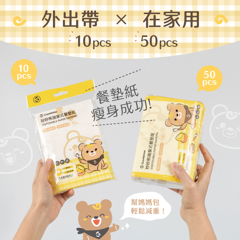 設計30*45cm大尺寸餐墊紙,一次鋪一張就很夠用,除了鋪在餐桌上以維持桌面乾淨,也可以當作寶寶的用餐圍巾,預防食物沾染寶寶衣服,除了當寶寶餐墊,也可靈活運用於生活中,讓寶寶開心同時也能體貼媽媽的辛勞。