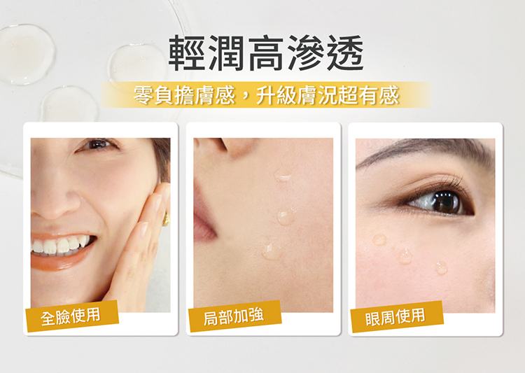 ◆補骨脂酚:植物性A醇,撫紋抗皺、緊緻毛孔,提升肌膚彈潤及透亮度。