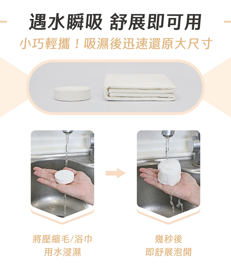 內含:旅行厚磅壓縮浴巾*6顆+竹纖小方巾*2包