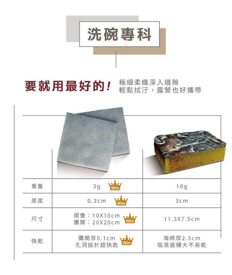 ◆ 易擰速乾、柔韌不易破,可水洗、可重複使用